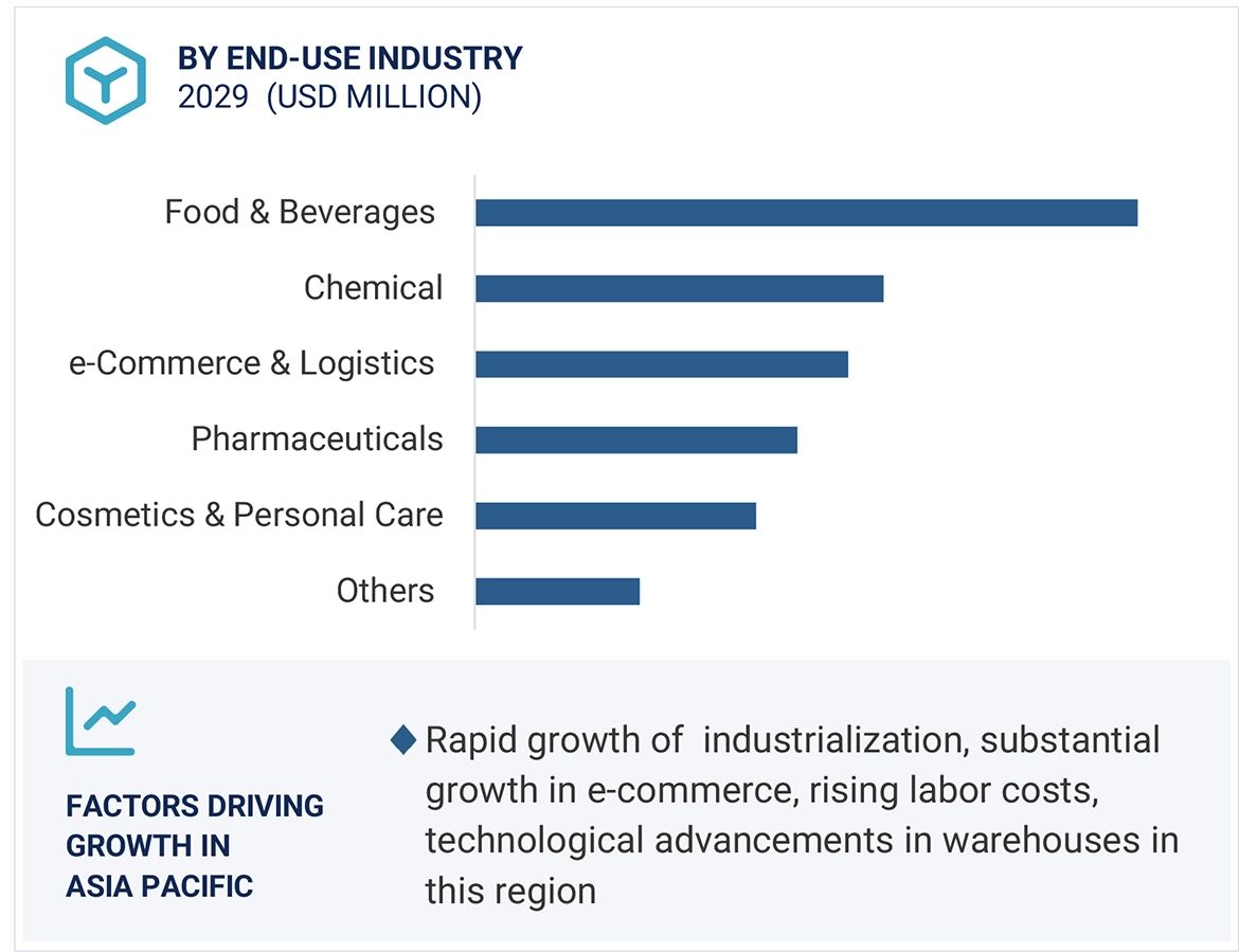 Industries such as automotive, chemical, e-commerce, retail, food & beverages, healthcare, pharmaceuticals, cosmetics & personal care, and textile