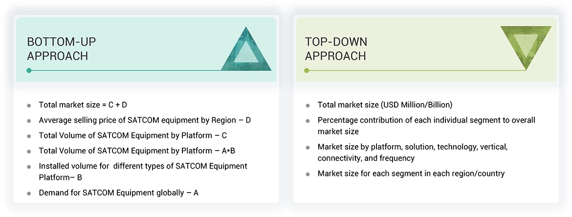 After arriving at the overall size of the SATCOM Equipment market from the market size estimation process explained above, the total market was split into several segments and subsegments. To complete the overall market engineering process and arrive at the exact statistics for various market segments and sub-segments, the data triangulation and market breakdown procedures explained below were implemented, wherever applicable. The data was triangulated by studying various factors and trends from both the demand and supply sides. The market size was also validated using both the top-down and bottom-up approaches.