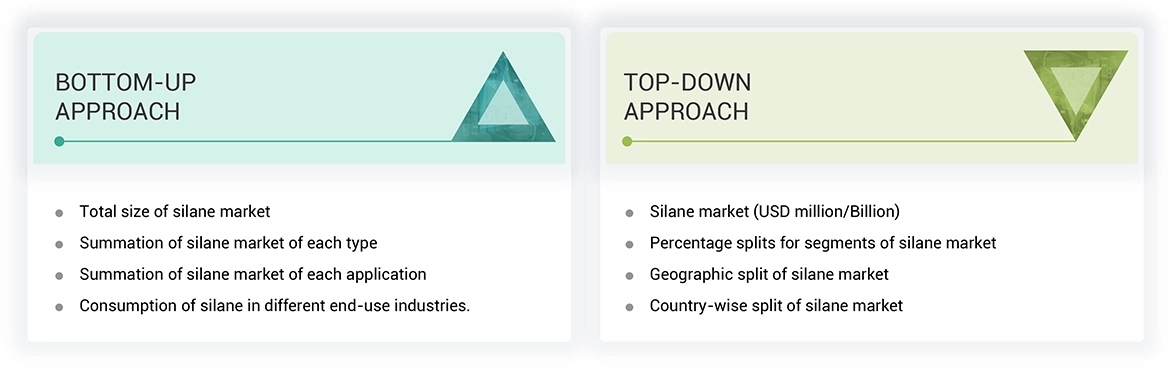 The study involved four major activities for estimating the current global size of the silanes market. Exhaustive secondary research was conducted to gather information on the market, the peer market, and the parent market. The next step was to validate these findings, assumptions, and sizes with the industry experts across the value chain of silanes through primary research. Both the top-down and bottom-up approaches were employed to estimate the overall size of the silanes market. After that, market breakdown and data triangulation procedures were used to determine the size of different segments and sub-segments of the market.