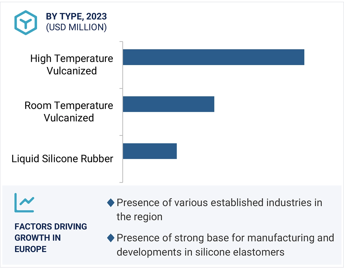 Silicone elastomers are rubber-like materials composed of carbon, hydrogen, and oxygen, apart from silicone, which is a polymer. They have high heat and oxidative stability, outstanding low-temperature flexibility, and resistance to many chemicals, weathering, ozone, and ultraviolet (UV) sunlight. Their high heat resistance and lower effect on the environment make them suitable for various end-use industries. Their low viscosity helps in easy fabrication/vulcanization in injection molding process. Silicone elastomers are used in automobiles for cure-in-place gaskets and vibration dampers; electronics mold making for prototyping, restoration, furniture, and ornaments; and in household applications as gaskets and O-rings.