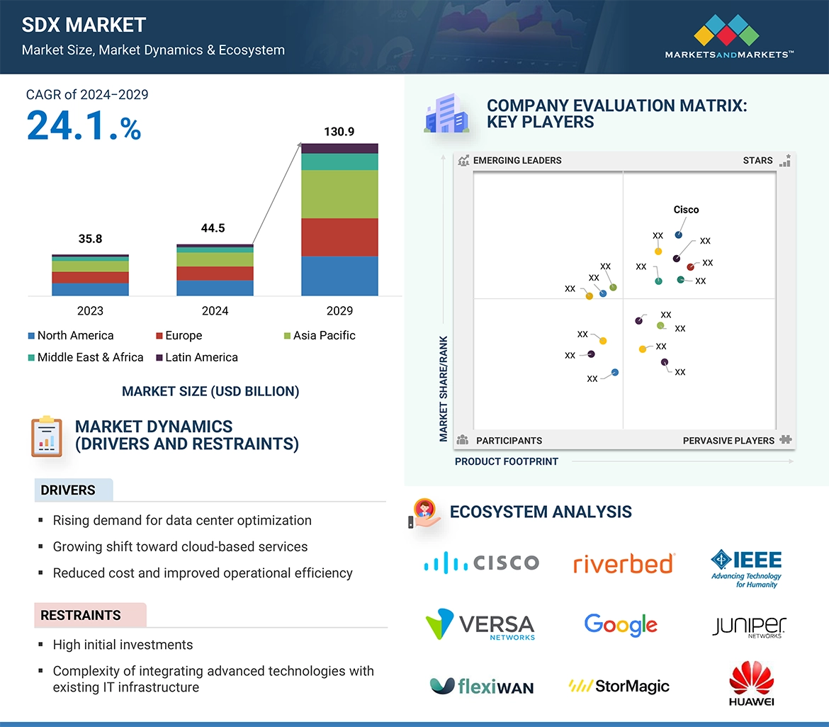 To determine and forecast the global Software-Defined Anything (SDx) market by offerings (solutions, services), verticals, and region from 2024 to 2029, and analyze the various macroeconomic and microeconomic factors affecting market growth.