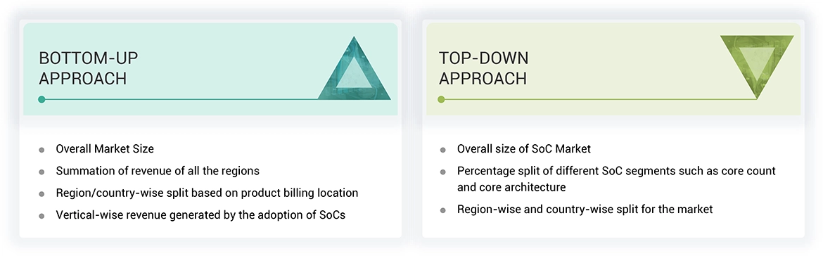 In the complete market engineering process, both top-down and bottom-up approaches were used, along with several data triangulation methods, to estimate and forecast the size of the market and its segments and subsegments listed in the report. Extensive qualitative and quantitative analyses were carried out on the complete market engineering process to list the key information/insights pertaining to System-on-Chip (SoC) market.