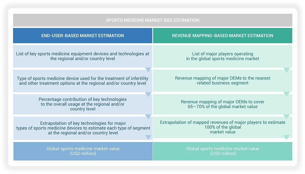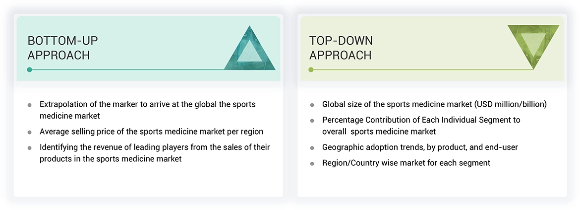 The Sports medicine market was segmented under various categories and subcategories using the above-mentioned methodology. Thereafter, proper data triangulation and the market segmentation process are carried out to further increase the accuracy of the data for each segment. Factors and trends from both the demand and supply sides were studied. Rigorous employment of both top-down and bottom-up approaches provided the result of the analysis of the sports medicine market.