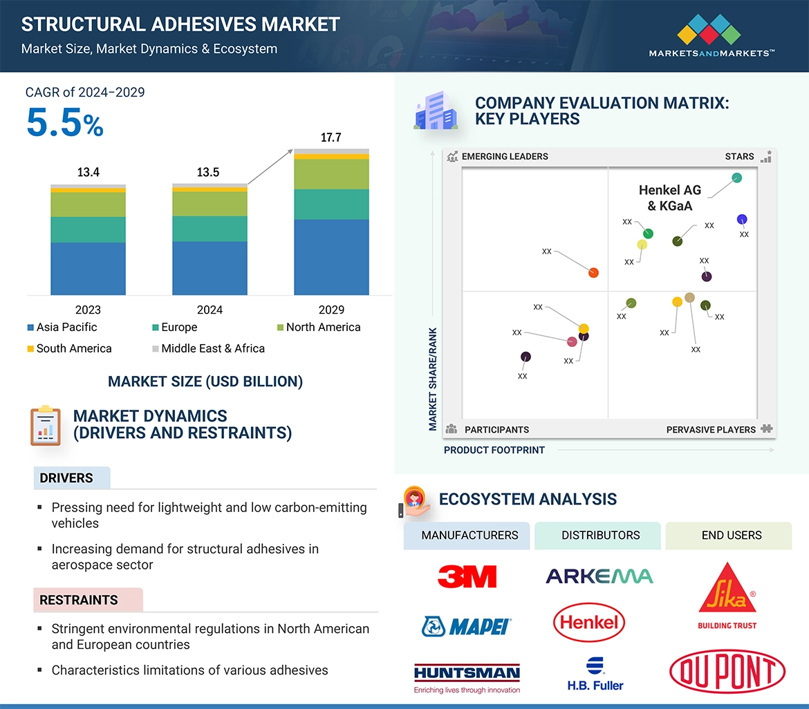 To project the structural adhesives market size for North America, Europe, Asia Pacific, the Middle East & Africa, and South America
