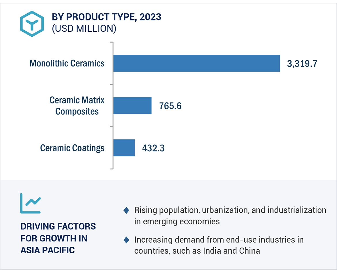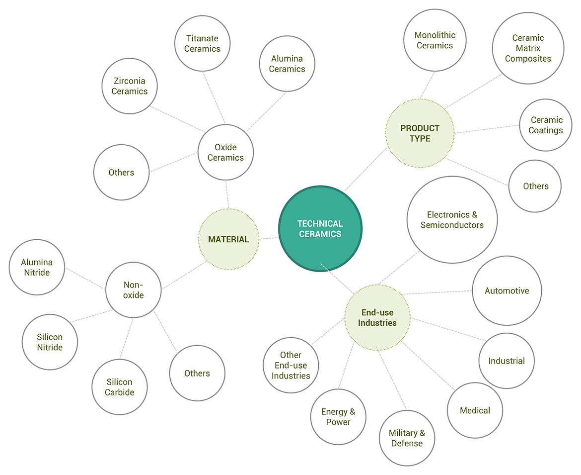 Technical ceramics are used for engineering applications as they are inorganic, non-metallic ceramic products. They carry excellent properties such as high performance and temperature stability, increased toughness, low thermal expansion, and various electrical properties such as excellent dielectric strength, electrical resistance, and electrical insulation for insulators and semiconductors. In the electronics & semiconductor end-use industry oxide ceramics are the most widely used material type as they possess high fracture toughness, wear resistance, and temperature resistance properties. Whereas non oxide ceramics are widely used in aerospace industry for manufacturing of components such as turbine blades, nozzles, and heat exchangers due to their excellent wear resistance and high-temperature capabilities. Additionally, these ceramics are used as coatings in automotive industry.