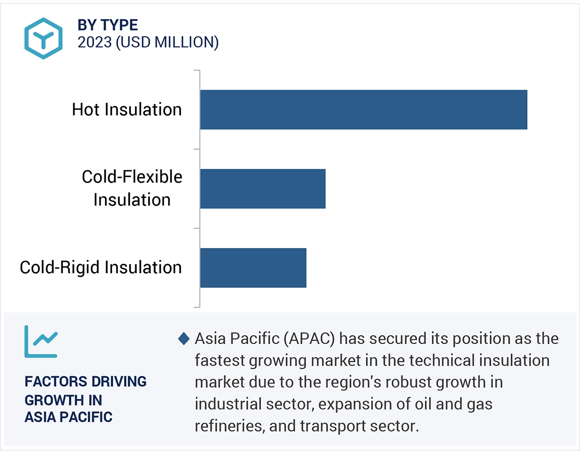 The technical insulation market encompasses a range of products and services designed to provide thermal, acoustic, and insulation solutions for various industrial and construction applications. This market includes insulation materials such as hot insulation, cold fiber insulation, and cold rigid insulation. It also comprises the installation, maintenance, and consulting services related to these insulation solutions. The technical insulation market serves diverse sectors, including commercial and residential construction, industrial manufacturing, and transportation, playing a crucial role in enhancing energy efficiency and safety across various industries.