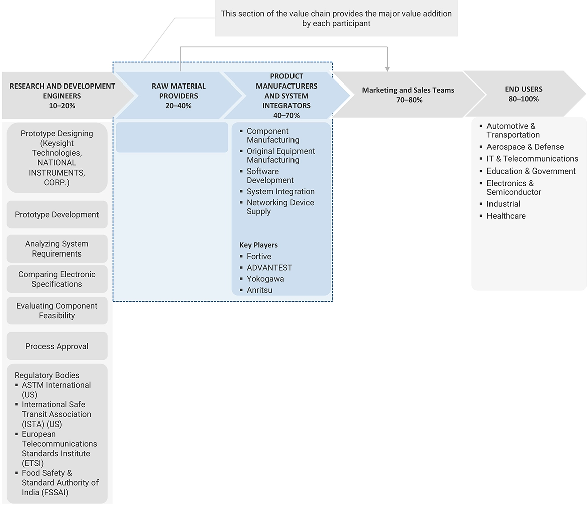 Secondary research helped identify key players in the test and measurement equipment market. Their revenues were determined through a combination of primary and secondary research, analyzed both geographically and by market segment, using financial statements and annual reports. Insights were further enriched through interviews with CEOs, VPs, directors, and marketing executives.