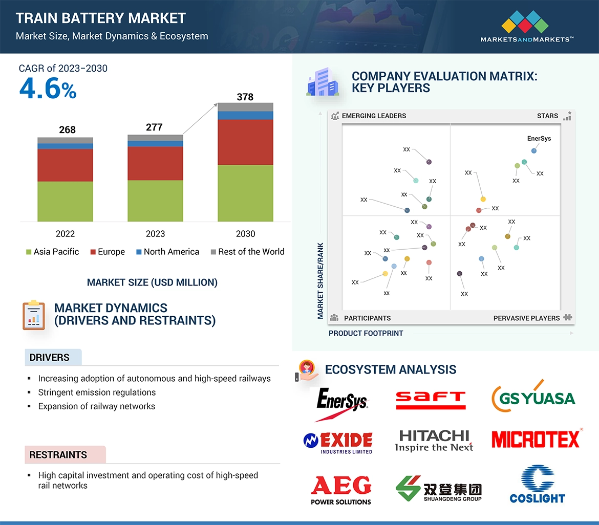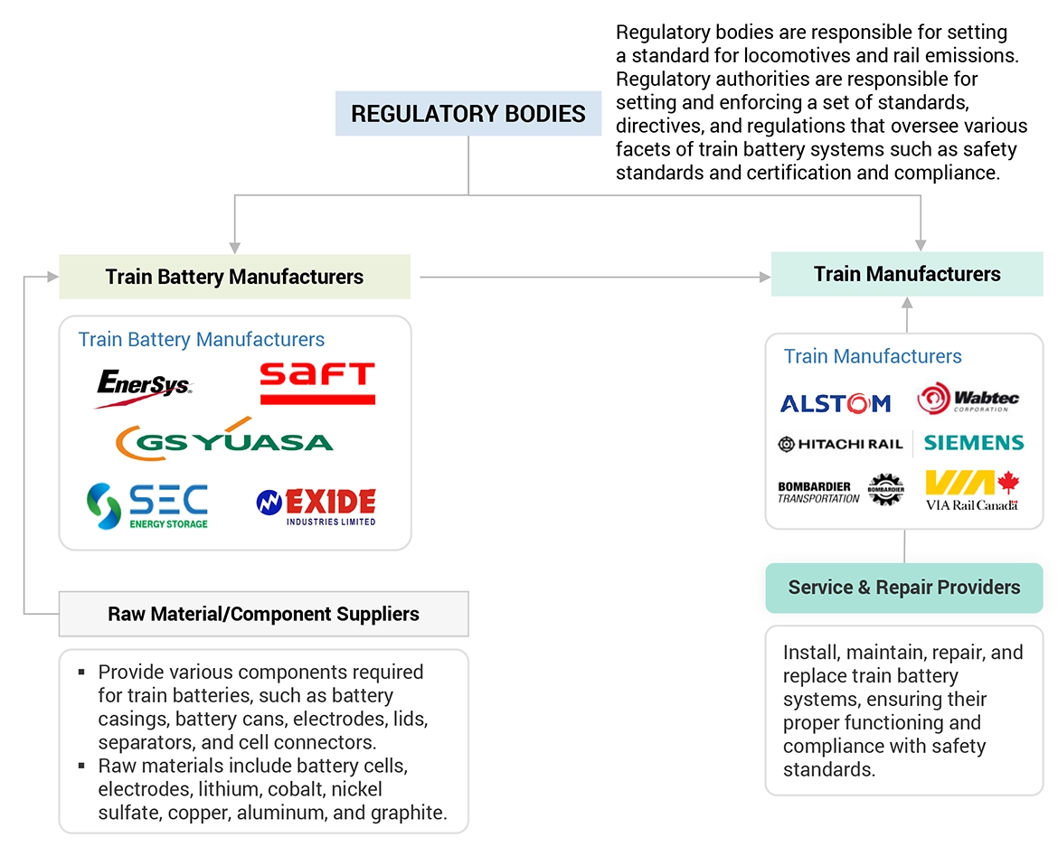 To analyze the competitive landscape and prepare a competitive evaluation quadrant for the global players operating in the train battery market.