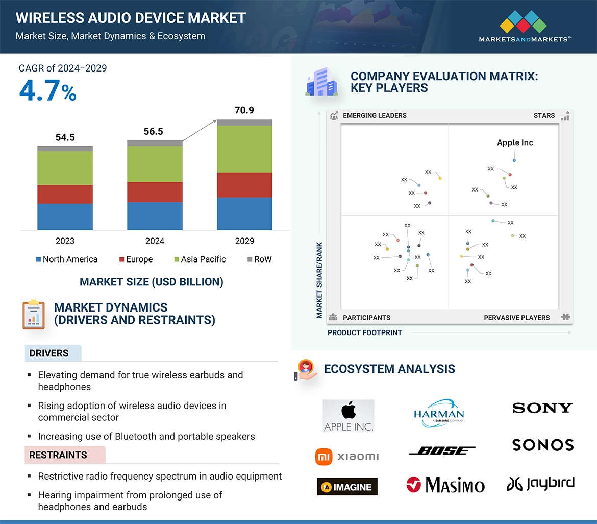 Analyzing major providers of wireless audio devices and original equipment manufacturers (OEMs), as well as studying their portfolios and understanding different technologies used