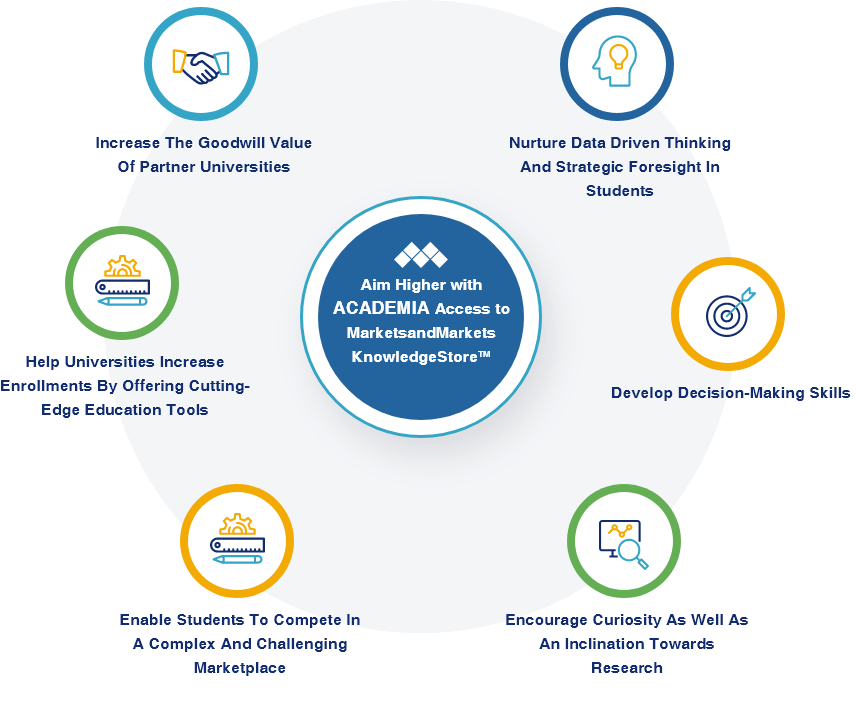 MarketsandMarkets™ has been working with top-notch universities in the United States, Europe and Asia Pacific in its bid to add value and excellence to the learning process. Emphasis is placed on exposure to current data across industries, technologies, and geographies, among others, for helping with research and casework. Adapting to these changes not only enables the students to become industry-ready but also allows universities to acquire their target student community.