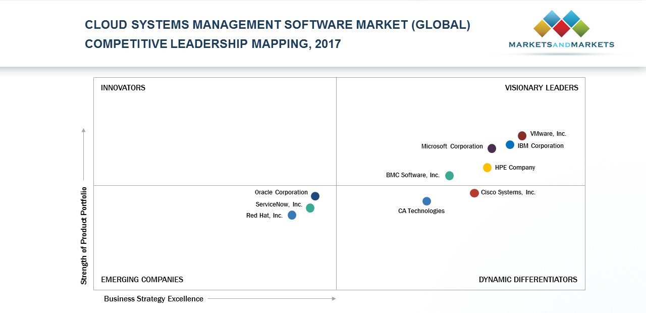VMWare, IBM, Microsoft, HPE Company, and BMC Software have been identified as the Visionary Leaders in the Cloud Systems Management Software Market – Competitive Leadership Mapping