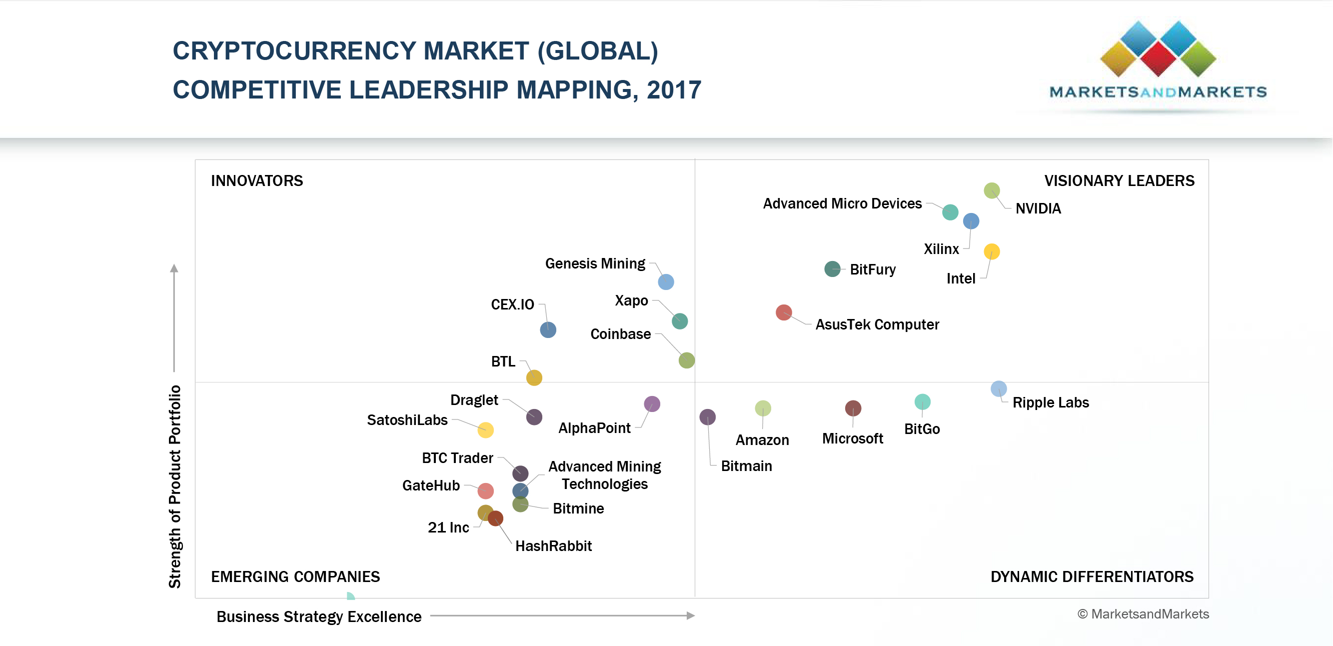 NVIDIA, Advanced Micro Devices, Xilinx, Intel, BitFury, AsusTek Computer have been identified as the Visionary Leaders in the Cryptocurrency Market – Competitive Leadership Mapping