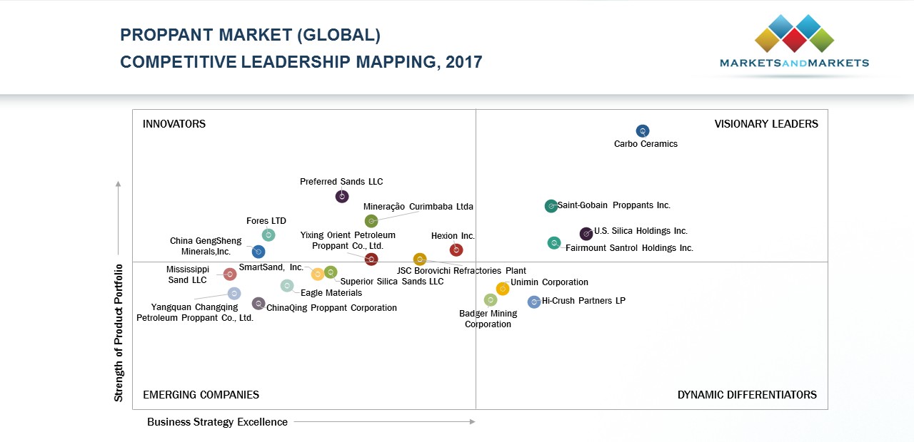 Carbo Ceramics, Saint-Gobain Proppants, U.S. Silica Holdings, and Fairmount Santrol Holdings have been identified as the Visionary Leaders in the Proppant Market – Competitive Leadership Mapping